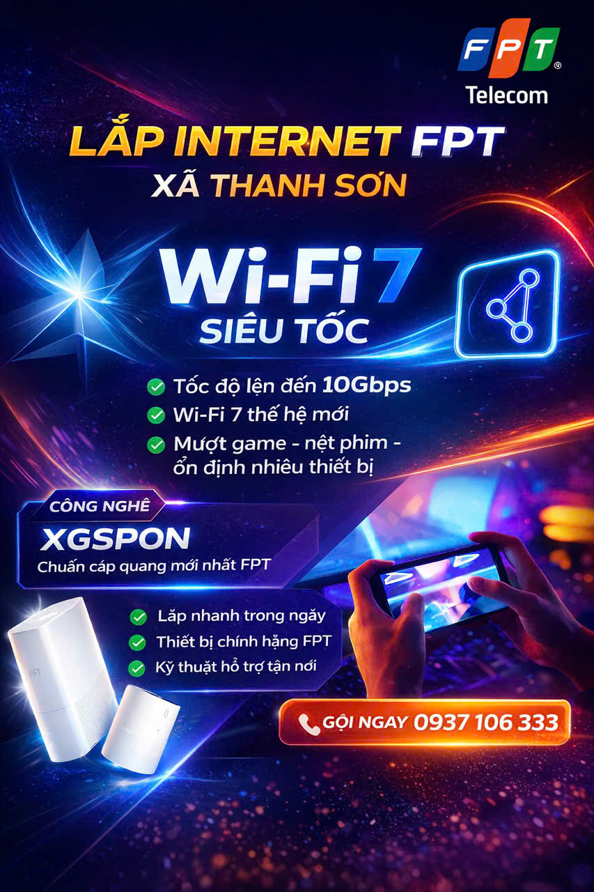 LẮP MẠNG FPT XÃ THANH SƠN – CÁP QUANG TỐC ĐỘ CAO, WIFI 6 SIÊU PHỦ, LẮP ĐẶT SIÊU NHANH TRONG NGÀY